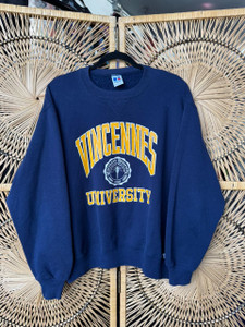 Vtg 90s Russell Vincennes University Navy Blue Crewneck Sweatshirt Size Large