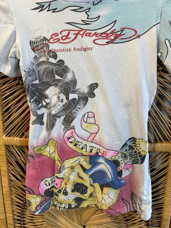 Quick view Add to Cart Vintage Y2K Sinful Bedazzled Cross AOP Women's Baby Tee Size Large $25.00 Sinful